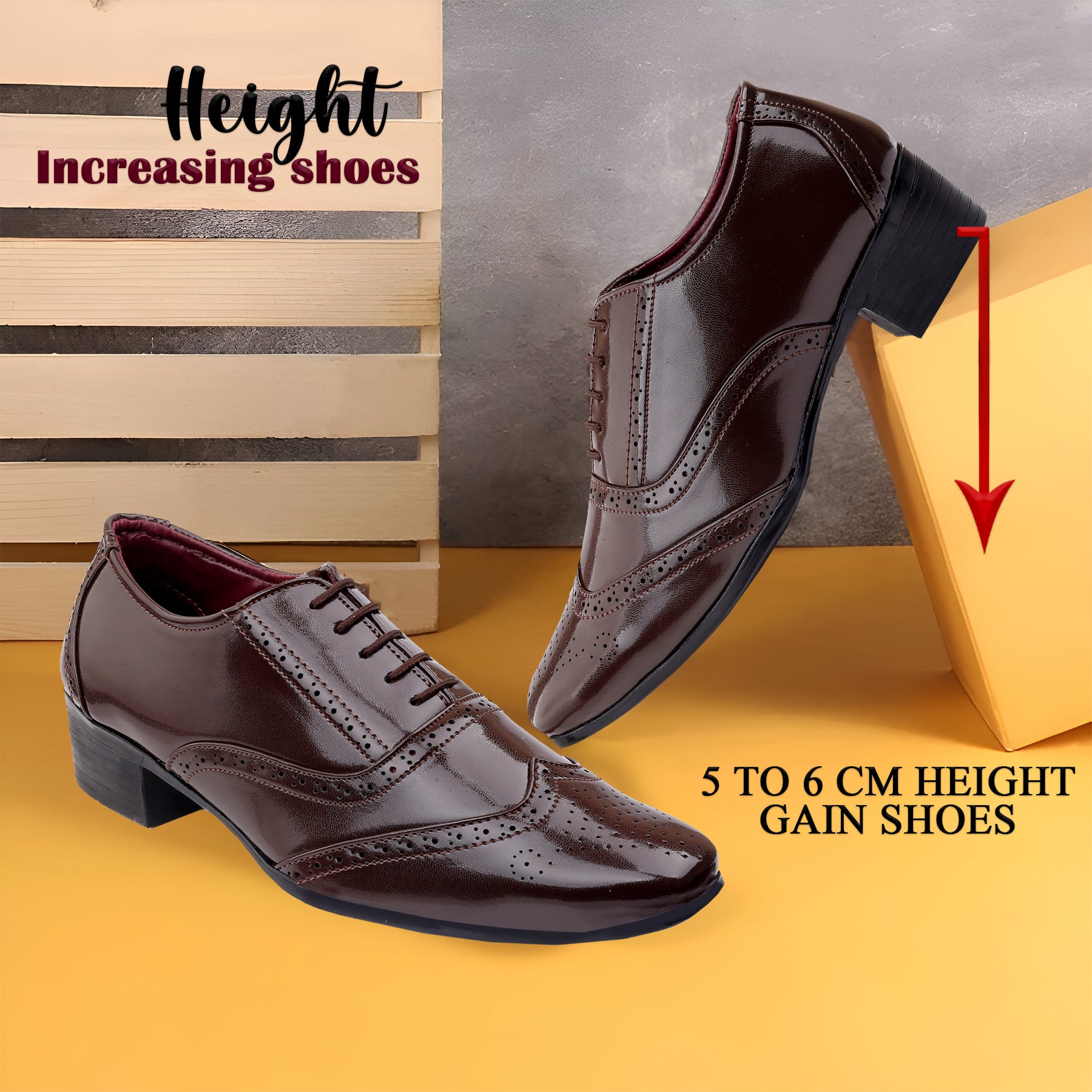 Elevate your style and confidence with our BXXY Height Increasing Formal and Office Wear Brogue Shoes for Men. The perfect blend of fashion and function, these shoes feature a discreet height increase to boost your confidence without sacrificing comfort. Professional and stylish, these shoes are a must-have for any formal or office wear occasion.